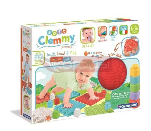 Rozwijająca zmysł dotyku ścieżka, którą można zbudować, składając duże elementy wykonane z miękkiej, bezpiecznej i nietoksycznej gumy; zaprojektowana po to, aby zapewnić niemowlętom ciekawe i wciągające doświadczenie. Elementy mają różnorodne chropowate tekstury, które stymulują percepcję dotykową dziecka. Na elementach znajdują się kształty klocków Clemmy, dzięki czemu dziecko może oddać się radosnemu dopasowywaniu klocków, aby stworzyć mnóstwo wież. Stymuluje percepcję dotykową, umiejętności obserwacyjne oraz zdolności manualne.