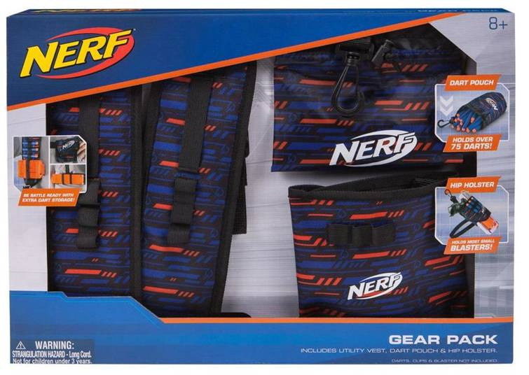 Przygotuj się do ekscytującej walki w świecie NERF! By zwyciężyć w bitwie ważne jest odpowiednie zaopatrzenie. Nie trać czasu na szukanie magazynków, strzałek badź dodatkowej wyrzutni. Teraz możesz mieć to wszystko pod ręką! Kamizelka taktyczna, kabura na wyrzutnię, zakładana na udo oraz etui, które pomieści aż 75 strzałek stanowi prawdziwe tacti-cool! Tak przygotowany do walki nie masz prawa przegrać! Dlaczego warto mieć kamizelkę na akcesoria NERF: posiada specjalne miejsca na 6 strzałek, miejsce na 2 magazynki z przodu, miejsce na 1 magazynek z tyłu, kieszeń na dodatkowe strzałki. Zestaw zawiera: kamielkę, kaburę na pistolet Nerf, która idealnie pasuje do wszystkich małych wyrzutni m.in. strongarm, disruptor, firestrike oraz 3 strzałki, etui na strzałki, w której przechowywać możesz nawet 75 strzałek. Kabura i etui posiadają haczyki, które umożliwiają dopięcie ich do kamizelki. Rozmiar uniwersalny- kamizelka posiada regulację za pomocą rzepów. Zestaw nie zawiera strzałek, wyrzutni ani magazynków.