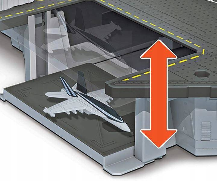 Zainspirowany filmem Top Gun: Maverick, Matchbox dostarcza niesamowitą replikę lotniskowca z mnóstwem niesamowitych funkcji. Duży lotniskowiec ma działające wyrzutnie rakiet i miejsce na przynajmniej 10 niszczycieli Dwa zatrzaski odblokowują schowek i przekształcają zestaw w pełnowymiarowy statek z windą samolotu i powierzchnią do lądowania Otwiera się również tylna klapa, aby zapewnić jeszcze więcej miejsca do przechowywania W zestawie znajduje się odlewany odrzutowiec Top Gun Boeing F / A 18 do odtwarzania ulubionych scen lub przeżywania śmiałych przygód Przedni zatrzask lotniskowca opada, aby służyć jako winda samolotu, która transportuje odrzutowiec Top Gun na pokład! Tylny właz otwiera się na lotniskowcu, zapewniając wystarczająco dużo miejsca do przechowywania co najmniej 8 samolotów Sky Busters! Naciśnij przycisk na prawdziwej działającej wyrzutni rakiet, aby rozpocząć atak na ogień wroga! (Zestaw zawiera dwa pociski rakietowe.)