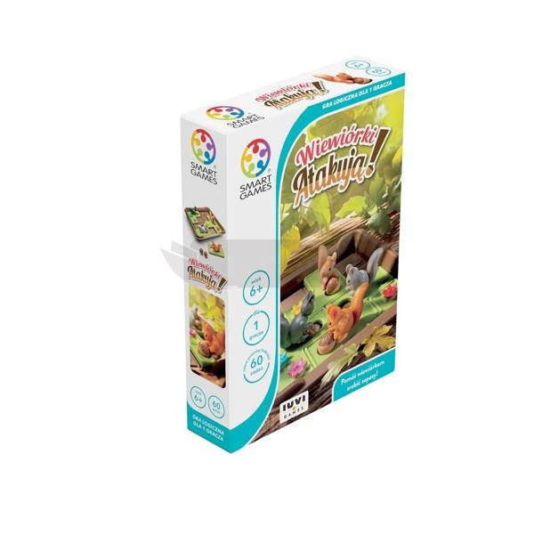 ,,Wiewiórki Atakują" to kompaktowa gra logiczna, w której gracze starają się pomóc wiewiórkom umieścić orzechy w dziuplach. Posługując się kolorowymi i atrakcyjnie wykonanymi elementami, mali gracze będą mogli rozwiązać 60 zadań o narastającym poziomie trudności.