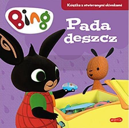 Gdy za oknem pada deszcz, Bing i Flop urządzają zabawę w poszukiwanie ukrytych w domu skarbów. Sympatyczną opowieść o przygodach ulubionego króliczka kilkulatków, który nudził się w czasie deszczu, uzupełniają znajdujące się na stronach książeczki otwierane okienka. W każdym z nich czeka niespodzianka na przykład klocek do zabawy lub chrupiąca marchewka więc maluch razem z Bingiem odkrywa kolejne przedmioty. Historia opowiedziana w książce przeplata się z pytaniami, które dodatkowo naprowadzają dziecko na właściwy trop. To świetna zabawa, a jednocześnie okazja do wyćwiczenia koordynacji ręka-oko i zaproszenie do odkrywania świata dookoła!