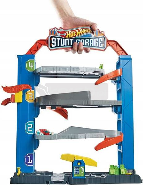 Fantastyczny garaż Hot Wheels City Stunt Garage to jedyny garaż, w którym samochody dziecięce mogą przeskakiwać z jednego piętra na drugie! Skorzystaj z windy, aby sprowadzić samochody na dowolny poziom i zdecyduj się tam zaparkować lub zjeżdżać, wskakując na niższe piętro. Dzieci mogą używać manetek do kierowania samochodem na określony poziom lub mogą udać się na parter w celu całkowitego sprawdzenia samochodu. Napełnij go i upewnij się, że samochód jest gotowy na następną przygodę! Każdy zestaw łączy się bezpośrednio z innymi zestawami Hot Wheels City i szarym torem City; nadal kompatybilny z Twoim pomarańczowym torem. Zaprojektowany, aby inspirować do opowiadania historii i kreatywności dzieci w wieku od 3 do 8 lat, dzięki świeżym, kolorowym i funkcjonalnym zestawom, które pokochają. Dzieci mogą korzystać z windy, aby wjechać samochodem na żądany poziom i zaparkować tam lub zjechać na niższy poziom Istnieją manetki, które prowadzą samochody na określone poziomy, a główne piętro pozwala dzieciom uzyskać całkowity przegląd samochodu, zatankować i przygotować się na następną przygodę Wszystko łączy się w Hot Wheels City i innych torach i zestawach do zabawy Hot Wheels (sprzedawane osobno). Dzieci mogą wjeżdżać i wjeżdżać na 4 poziomy w tym niesamowitym pionowym garażu z gąsienicami. W zestawie znajduje się 1 autko Hot Wheels