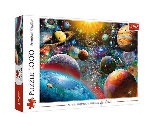 Puzzle składające się z 1000 elementów przedstawiające zachwycający, wielobarwny obraz kosmosu autorstwa artysty Adriana Chestermana. Po ułożeniu powstanie obrazek o wymiarach 683x480 mm.
