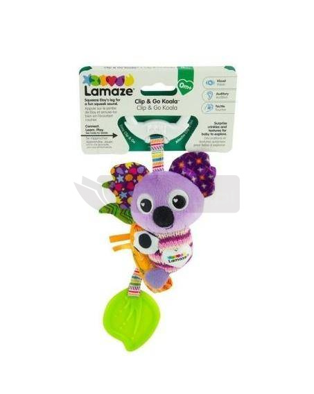 Kolorowa zawieszka z grzechotką, i gryzakiem. Dzięki wykonaniu z materiałów o różnej fakturze, w jaskrawych kolorach, oraz szeleszczącym elementom stymuluje dotyk, wzrok i słuch.