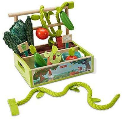Zdrowe, ekologiczne produkty pozyskiwane z lokalnej farmy teraz są dostępne na Twoim straganie Farm-to-Market! Ten fantastyczny zestaw do odgrywania ról od Fisher-Price zawiera wszystko, czego potrzebują przedszkolaki, aby „sadzić” i „uprawiać” warzywa, takie jak marchew, jarmuż, pomidory i nie tylko, a następnie stworzyć stoisko do sprzedaży świeżych produktów. Różnorodne tekstury, takie jak miękkie pnącza roślin, gładkie warzywa z wyjmowanymi liśćmi, drewniana skrzynka i kasetka z miękkimi pieniędzmi pozwalają dziecku prawdziwie odgrywać rolę.