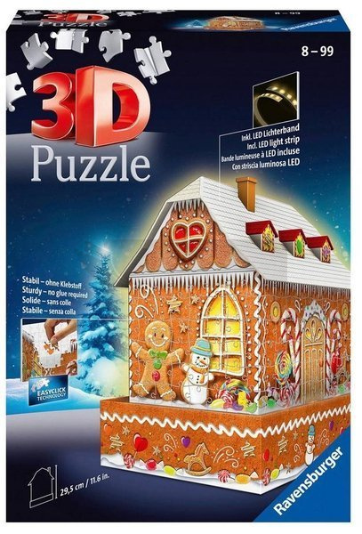 Piernikowa Chatka z serii "Budynki nocą" to coś dla miłośników architektury. Konstrukcja z puzzli 3d to wiernie odwzorowana budowla, którą możesz trzymać u siebie w domu. W zestawie oprócz puzzli znajdziesz również podstawkę i światełka LED.
