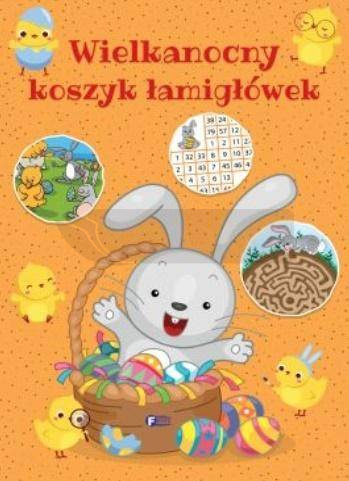 Wielkanoc nieodłącznie kojarzy się z koszykiem, do którego wkładamy różne przysmaki. Specjalnie na ten wyjątkowy czas przygotowaliśmy podobny koszyk, tyle że wypełniliśmy go rozmaitymi łamigłówkami. Dzięki tej kolorowej książeczce dzieci z pewnością nie będą się nudzić, gdyż czeka tu na nie masa atrakcji. Najmłodsi znajdą w niej ciekawe zadania, takie jak szukanie i liczenie pisanek, wypatrywanie różnic pomiędzy obrazkami, pomogą też świątecznemu zajączkowi odnaleźć drogę wśród skomplikowanych labiryntów.