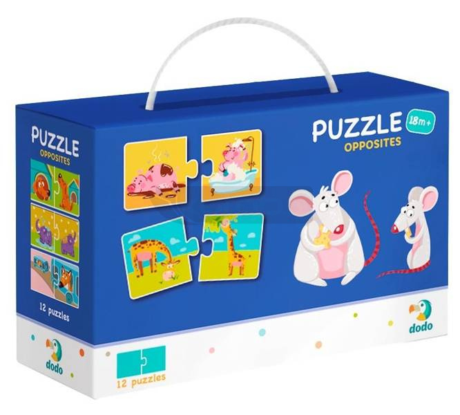 Zabawa polega na dopasowaniu dwóch elementów puzzli do siebie tak, aby utworzyły spójny obrazek (w tym przypadku dopasowujemy 2 połówki zwierzęcia). Wiek: 18 m+, Ilość elementów: 12 podwójnych puzzli. W serii DODO Duo można odkryć 6 zestawów o różnej tematyce: Gdzie żyją zwierzęta, Co zwierzęta jedzą, Mamy i dzieci, Przeciwieństwa, Cyferki i jagódki, Połówki Zwierzęta.