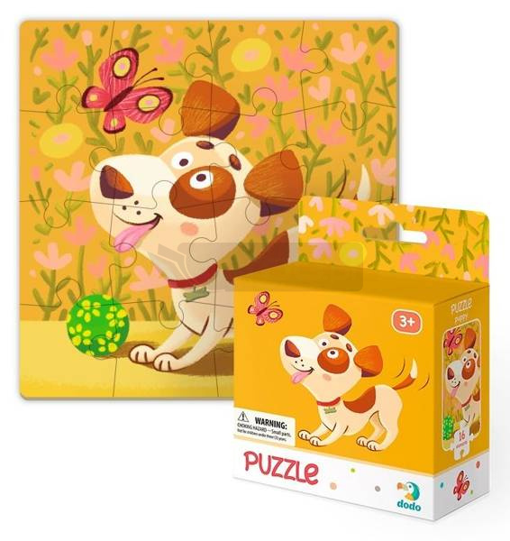 To niesamowita zabawa dla najmłodszych, która rozwija u nich małą motorykę oraz poprawia koncentrację. Puzzle z tej serii cechuje sympatyczna i przyjemna stylistyka, która zachęca dziecko do ich złożenia. W tym zestawie na obrazku znajdziemy uroczego pieska. Cała seria zawiera aż 8 obrazków przedstawiających zwierzęta: kaczuszkę, konika, kotka, lwa, małpkę, pieska, słonika i żyrafę. Wiek: 3+, Ilość elementów: 16