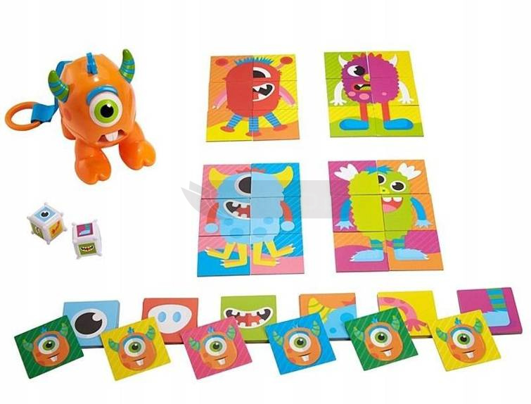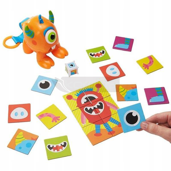 Ta gra dla dzieci w dopasowywanie zawiera kolorowe wzory, grafiki, które dzieci pokochają i oczywiście… GŁOWĘ POTWORA, która wypluwa kostkę! Aby zagrać, dzieci kładą zakryte karty z motywami potworów, a następnie wyciągają ogon rolki głowy potwora, aby wypluć kostkę. Kość pokaże określoną część ciała potwora, a gracze często znajdują kartę z pasującą częścią ciała potwora. Kiedy odgadną poprawnie, dostają jeden element układanki z potworami i grają dalej, aby zdobyć wszystkie elementy układanki z potworami, aby ukończyć układankę z potworami. Dla dzieci w wieku od 3 lat.