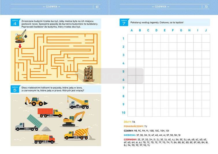 Całość podzielona jest na interesujące dzieci tematy: moje ciało, dom, sport, zwierzęta, przyroda, pojazdy, na budowie. Zarówno dziewczynki, jak i chłopcy, znajdą w niej coś ciekawego.