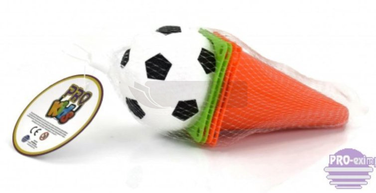 Zestaw gotowy do użycia, składa się z 4 słupków oraz gotowej napompowanej piłki o średnicy: 9 cm. Wysokość słupka to 13 cm. W zestawie 4 pachołki i piłka.