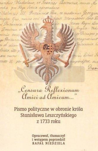 "Censura Reflexionum Amici ad Amicum..." to jedna z najobszerniejszych, a zarazem najmniej znanych publikacji przedostatniego bezkrólewia w Rzeczypospolitej. Jej autora zainspirowały wydane wówczas inne pisma o wydźwięku jednoznacznie antysaskim i antyfrancuskim: Przestroga Braterska w teraźniejszym podczas interregnum Ojczyzny autorstwa Stanisława Leszczyńskiego oraz Refleksyje przyjaciela do przyjaciela nad Przestrogą Braterską Jana Aleksandra Lipskiego. Niniejsza książka oprócz starannej edycji pisma Censura Reflexionum Amici ad Amicum zawiera także te dwa pozostałe teskty.