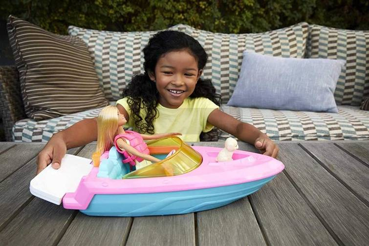 Inspiruj przygody w podróży tą wspaniałą motorówką Barbie, który naprawdę unosi się na wodzie. Dzięki swoim funkcjom, kolorowemu wzornictwu i miejscu aż na 3 lalki (sprzedawane osobno) ta różowo-niebieska szybka łódź dostarcza niekończących się historii inspirowanych morzem. Szczeniaczek lalki Barbie jest gotowy do jazdy, na dziobie jest nawet specjalne siedzenie, tylko dla niego. Zaparkuj łódź, aby odpocząć na rufie z podstawkami i akcesoriami do napojów! Niezależnie od tego, czy młodzi poszukiwacze przygód zabierają tę łódź Barbie na wodę, czy wyobrażają sobie własny ocean zabawy, możliwości zabawy są nieograniczone, ponieważ z Barbie możesz być kimkolwiek zechcesz.