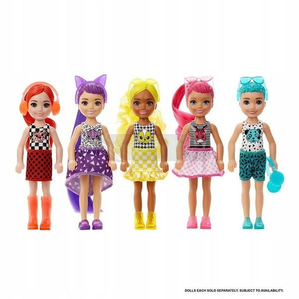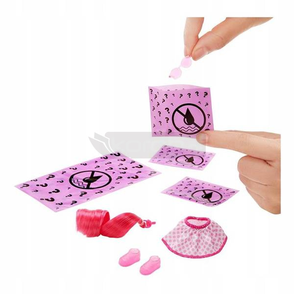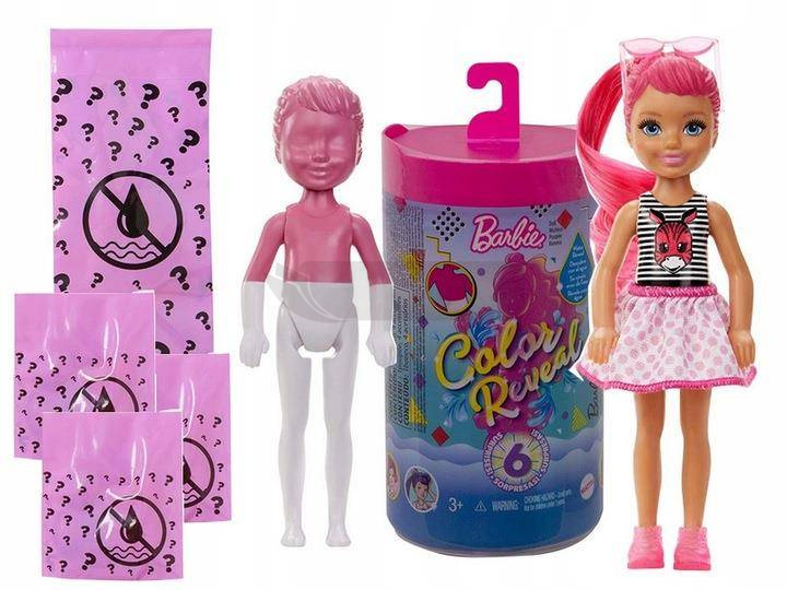 Zestaw Barbie Color Reveal Monochrom Chelsea kryje aż sześć różnych niespodzianek! W każdym z nich jest lalka w modnym ubranku, ale jej wygląd pozostaje na razie tajemnicą. Otwieranie opakowania jest częścią zabawy – pociągnij za pasek, aby usunąć zewnętrzną warstwę i odsłonić przezroczystą tubkę. W środku znajdziesz różowo-białą lalkę Chelsea oraz cztery tajemnicze torebki. Wyjmij je wszystkie i napełnij tubkę ciepłą wodą, a następnie włóż lalkę do środka i poruszaj nią. Woda zmieni kolor na różowy, a po wyciągnięciu Chelsea odkryjesz jej wygląd! Każda lalka ma inny kolor oczu, włosów, skóry i nóg oraz inny gorsecik, a to jeszcze nie koniec niespodzianek. Otwórz torebki, by znaleźć jaskrawą doczepianą kitkę, spódniczkę lub szorty z czarno-białym wzorem oraz parę bucików i specjalne akcesorium. Użyj zimnej wody, aby odsłonić uroczą grafikę na gorseciku Chelsea – tę niesamowitą transformację można powtarzać wiele razy! Każda seria z linii Color Reveal ma wyjątkowy motyw – ten stawia na wyraziste wzory oraz jeden jaskrawy kolor, pojawiający się na nogach, włosach i dodatkach Chelsea. Do przechowywania akcesoriów użyj tubki z zestawu. Którą lalkę znajdziesz? Dzieci mogą zebrać też inne zestawy z tej linii, aby dowolnie dopasowywać elementy i odkrywać nowe możliwości zabawy! Świetny prezent dla fanów Barbie.