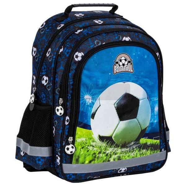 Dwukomorowy plecak szkolny z obszerną kieszenią przednią. Po bokach znajdują się dwie boczne kieszonki wykończone siatką. Plecak posiada miękkie wyściełane szelki, ergonomiczne plecy, taśmy odblaskowe, wzmacnianą rączkę oraz wzmocnione dno.