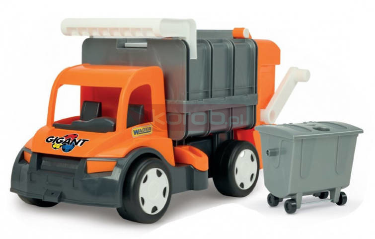 Zabawka Roku 2017 Gigant Śmieciarka to wielki, wytrzymały pojazd o długości 60 cm w 2 ciekawych wariantach kolorystycznych: pomarańczowym i niebieskim. Śmieciarka wyposażona jest w ruchomy podnośnik do opróżniania kontenerów, posiada otwieraną tylną klapę. W zestawie znajduje się kontener na śmieci, który można przyczepić do tyłu samochodu. Ruchome elementy, mocna konstrukcja o udźwigu do 50 kg, która odwzorowuje prawdziwy pojazd to gwarancja atrakcyjnej zabawy. Całość wykonana jest z wysokiej jakości nietoksycznego tworzywa sztucznego odpornego na warunki atmosferyczne.