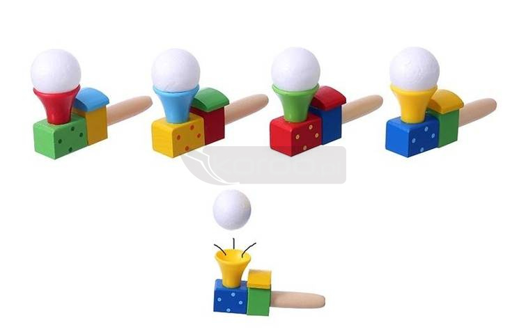 Drewniana dmuchawka logopedyczna wykonanan z drewna i pomalowana bezpiecznymi farbami. Dmuchawka znana również jako dmuchanka jest jedym z podstawowych zabawek używanych w gabinecie logopedycznym. Dzięki zabawie dmuchawką dzieci ćwiczą prawidłowy tor oddechowy. Ma to bardzo dobry wpływ na prawidłowy rozwój mięśni odpowiedzialnych za mowę oraz na rozprężanie płuc.