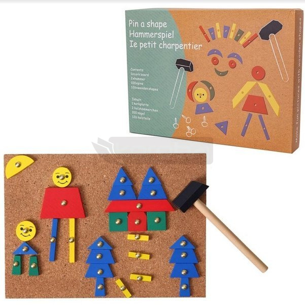 Korkowa przybijanka z drewnianaymi kształtami i pinezkami