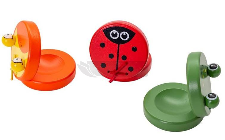 Drewniane kastaniety żabka, kaczuszka i biedronka sprawdzą się jako jeden z pierwszych instrumentów dla Twojego dziecka.
