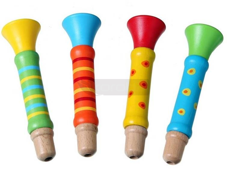 Pięknie pomalowana drewniana trąbka z dźwiękiem, do kreatywnego i przyjemnego poznawania świata muzyki!