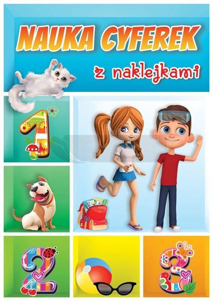 NAUKA CYFEREK z naklejkami. Jest to propozycja edukacyjna dla dzieci, które uczą się liczyć. W książeczce znajdują się również ciekawe, rozbudzające wyobraźnię i kreatywność zadania dla najmłodszych oraz naklejki.