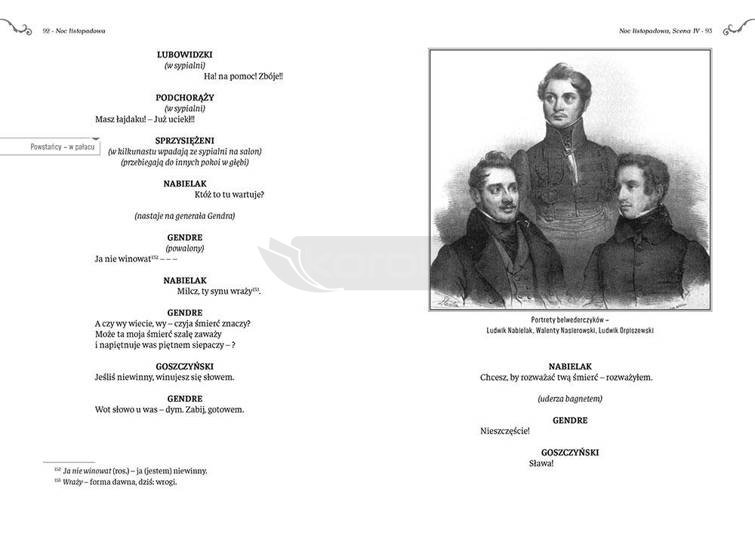 W przedziwnym kręgu wydarzeń splatają się tutaj dwie płaszczyzny - realna, historyczna, na której jest rok 1830 i właśnie wybucha powstanie listopadowe, oraz mitologiczna, na której bogowie znani z mitologii greckiej wpływają na los powstania i decydują o przyszłości osób biorących w nim udział, zarówno po jednej, jak i po drugiej stronie. .
