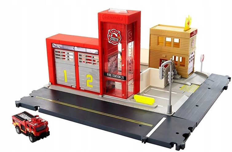 MATCHBOX ZESTAW DO ZABAWY REMIZA STRAŻACKA straż pożarna + autko HBD76