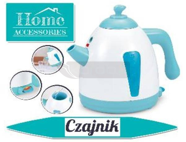 W zestawie: czajnik z rączką i zdejmowanym wieczkiem, funkcje: w czasie "gotowania" wydobywa się prawdziwa para, podświetlany włącznik czajnika zmieniający kolor, dioda stanu wody, dźwięk prawdziwego czajnika.