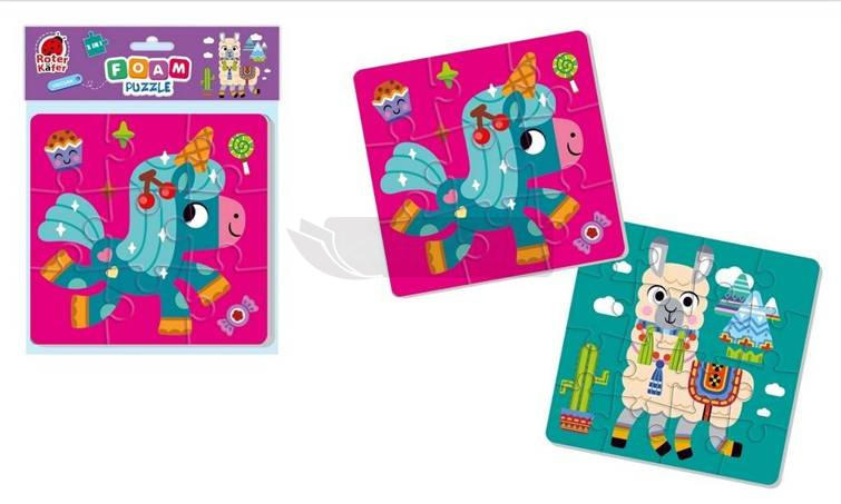 Miękkie piankowe puzzle. 2 zestawy puzzli (16 i 9 elementów).