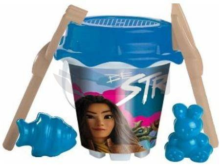 W zestawie: wiaderko, sitko, 2 foremki, grabki, łopatka, śr: 18 cm