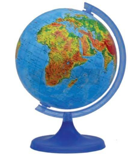 Globus 160 mm mapa fizyczna, cięciwa plastikowa, stopka plastikowa.
