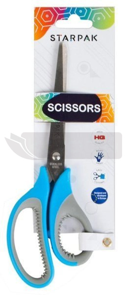 Nożyczki Starpak z doskonałym ostrzem z nierdzewnej stali najwyższej jakości. Ergonomiczna, bardzo wygodna gumowana rączka zapewnia precyzję i optymalizuje siłę używaną do cięcia. Chętnie kupowane zarówno do biura, jak i domu. Zapoznaj się również z innymi produktami Starpak dedykowanymi dla biura i domu! Nożyczki o długości 21 cm posiadają uniwersalny uchwyt odpowiedni dla osób zarówno prawo jak i leworęcznych. Posiadają również regulowany ścisk. Nożyczki pakowane na blistrze.