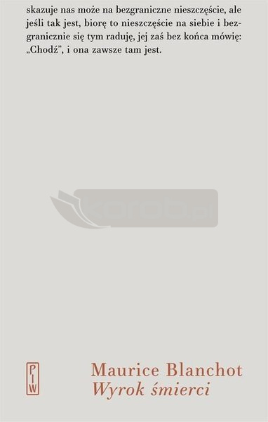 ?Pisanie jest po trosze umieraniem? ? hołdując tej zasadzie, Maurice Blanchot, jeden z wielkich samotników dwudziestowiecznej literatury, poświęcił się pisaniu. Wyrok śmierci, najsłynniejsza z jego krótkich powieści, ma pozory autobiografii, ale kiedy Blanchot pisze: ?Te wypadki przydarzyły się w 1938 roku?, nie ma rzeczy mniej pewnej niż to, kiedy i czy owe wydarzenia się rozegrały. To proza medytacyjna, skupiona na umieraniu bliskiej osoby, być może naznaczona własną chorobą autora, jego osobistym wyrokiem śmierci. Z niebywałą mocą przybliża się do śmierci i ją odsłania, jak nigdy nie uczynił żaden utwór.