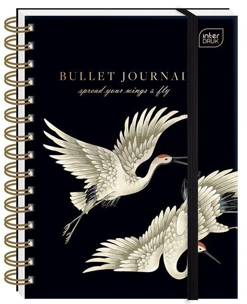 Organizer Bullet Journal na spirali w twardej oprawie ze złotym zdobieniem. Format: A5. Liczba kartek: 224. Zamykany na gumkę. W środku kartki w kropki i gładkie, a także praktyczne dodatki: naklejki i plastikowe szablony. W środku poradnik sketchnotingu stworozny przez Jadźka Rysuje, czyli jak efektywnie notować. Bullet Journal to stylowy i inspirujący notes do kreatywnego i skutecznego planowania, który sprawi, że organizacja każdego dnia stanie się łatwiejsza i przyjemniejsza. Bullet Journal to również doskonały pomysł na prezent.