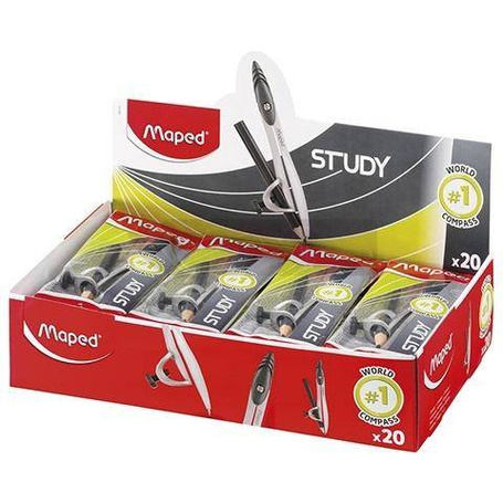 Metalowy cyrkiel STUDY z uniwersalnym uchwytem na ołówek. Główka cyrkla w kolorze czarnym. Flowpack.