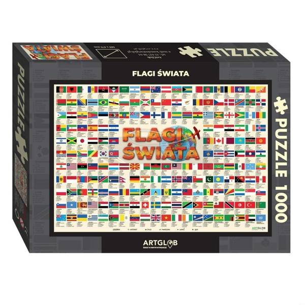 Na pewno staną się one nie lada gratką dla wszystkich osób głodnych wiedzy, jak i prawdziwych flagomaniaków. Po ułożeniu 1 000 elementów Waszym oczom ukaże się bowiem wielokolorowa grafika z uszeregowanymi alfabetycznie flagami o wymiarach 66x47 cm, a to nie wszystko! Pod każdą z nich znajdziecie także informacje dotyczące powiązanych z nimi państw takie jak ich stolica, liczba ludności, język urzędowy, powierzchnia oraz kontynent, na którym się znajdują. Szczerze wierzymy, że po wieczorach spędzonych na ich układaniu pytania o powierzchnię Watykanu lub kolory użyte we fladze USA, staną się dla Was dziecinnie proste. Puzzle Flagi Świata to produkt, dzięki któremu możesz w łatwy i przyjemny sposób zdobyć nową wiedzę, rozwinąć zainteresowania lub zrelaksować się po ciężkim dniu pracy. Puzzle z flagami świata są także niebanalnym pomysłem na rodzinny wieczór. Jakość, estetyka wykonania oraz ilość elementów sprawiają, że puzzle te stanowią idealny pomysł na prezent dla dorosłych, jak i starszych dzieci.