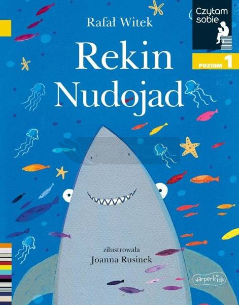 Dzięki tej książce twoje dziecko będzie mogło poćwiczyć głoskowanie, a krótkie zdania zawierające 23 podstawowe głoski ułatwią mu samodzielne przeczytanie opowiadania o rekinie nudojadzie. W książce jest około 150 - 200 wyrazów, co sprawia, że jest ona odpowiednia dla dzieci uczących się składać słowa. Bardzo duża czcionka użyta w książkach Czytam sobie z poziomu pierwszego również pomaga początkującym czytelnikom w lekturze.