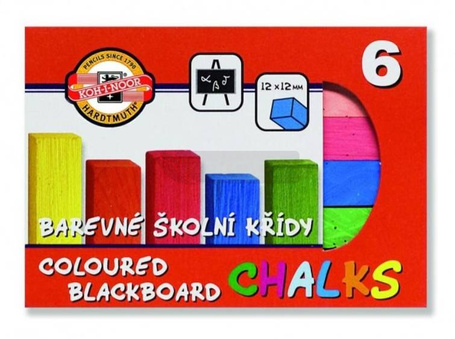Kreda szkolna kolorowa w postaci sztyftu o wymiarach 12x12 mm. Posiada dobre właściwości piszące, nie kruszy się i nie zbija w grudki przy ścieraniu. Wyprodukowana zgodnie z Europejskimi Normami Bezpieczeństwa na terenie Unii Europejskiej.