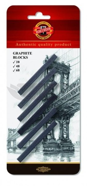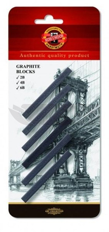 Bloczki grafitu o wymiarach 7x7x70 mm służą do wykonywania szybkich, ekspresyjnych szkiców. Doskonale nadaje się do rozcierania i uzyskiwania przejść tonalnych. Zestaw 6 sztuk.