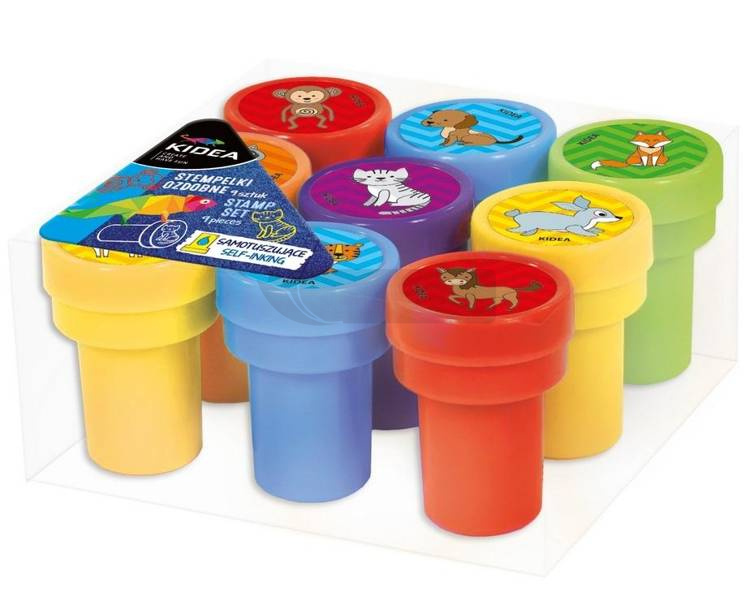 Stempelki w nowych, ciekawych wzorach ze zwierzątkami (pies, koń, lama, kot, szop, lis, tygrys, małpka, królik) udekorują każdy rysunek małego artysty. Stempelki są samotuszujące, więc nie wymagają używania dodatkowej poduszki z tuszem. Dzieci bardzo chętnie po nie sięgają i wykorzystują w różnorodnych twórczościach.