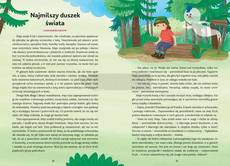 Mały czytelnik spotka tutaj zarówno zwyczajne dzieci, jak fantastyczne stworzenia czy mówiące zwierzątka, a każda historia porusza jakiś ważny temat. Z książki można dowiedzieć się np., że czasem smutek może być początkiem radości, czy można zawsze być we wszystkim najlepszym, jak współpracować zamiast się kłócić, skąd wziąć wiarę w siebie i odwagę do działania. Zapraszamy do lektury nie tylko dziewczynki, ale także chłopców!