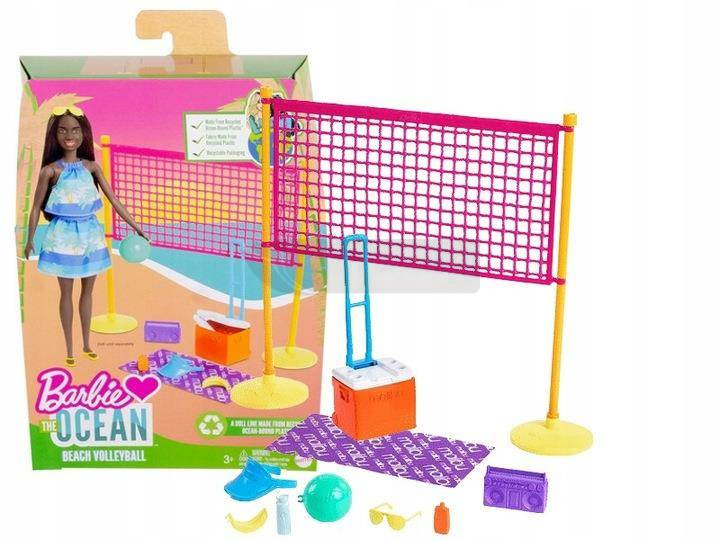 Zanurz się w opowieści dzięki zestawom Barbie Loves the Ocean, wykonanym z plastiku z recyklingu! Ten zestaw zachęca do zabawy na słońcu dzięki siatce do siatkówki plażowej, która ma rozmiar odpowiedni dla lalki Barbie i jej przyjaciółek (lalki sprzedawane osobno). Akcesoria sportowe to piłka do siatkówki, daszek, bidon, krem ??z filtrem przeciwsłonecznym, ręcznik, boombox, przekąska bananowa, stylowe okulary przeciwsłoneczne i otwierana i zamykana lodówka. Zestaw jest zapakowany w opakowanie nadające się do recyklingu z certyfikatem FSC. Dzieci w wieku od 3 do 7 lat mogą zbierać inne lalki i zestawy do zabawy Barbie Loves the Ocean, aby odgrywać różne historie, od wylegiwania się na piasku po surfowanie, a nawet organizowanie sprzątania plaży!