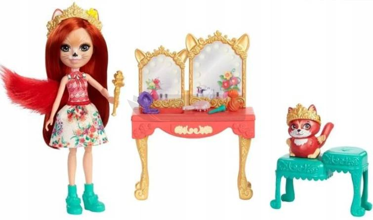 Daj się zabrać na baśniową przygodę do świata Enchantimals™. Te urocze Enchantimale przekazują magię przyjaźni i natury! Lalka Felicity Fox i jej zwierzak pomogą Ci przygotować się na królewski bal! Dzięki zdobionej wiktoriańskiej toaletce z podwójnym lustrem i podwójnym siedziskiem (dla lalki i zwierzaka) nasi bohaterowie mogą łatwo i wygodnie przygotować się do ważnych wydarzeń, takich jak bal czy święto. W zestawie znajdują się również akcesoria - perfumy, szczotka do włosów, puder i wiele innych, wszystko do realistycznej, wspaniałej zabawy. Wszystkie akcesoria można pięknie ułożyć na toaletce. Lalka jest ubrana jak królewna: jej odpinana spódniczka, buty pasują do wyglądu zwierzaka. Lalka i jej zwierzątko noszą koronę. Zestaw laleczek to świetny prezent dla dzieci od 3 lat - szczególnie dla miłośników zwierząt.