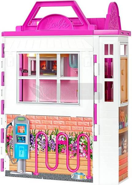 Dzieci mogą pomóc lalce Barbie® (sprzedawanej osobno) w przyjmowaniu zamówień przy okienku lub posadzeniu czterech gości przy ladzie i stoliku na patio.