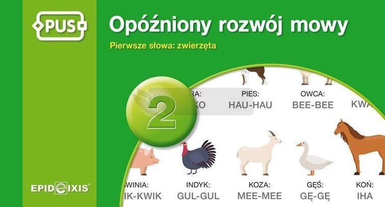 Opóźniony rozwój mowy 2. Pierwsze słowa: zwierzęta to druga część zupełnie nowej serii książeczek PUS. Seria ta powstała z myślą przede wszystkim o tych dzieciach, którym nauka mówienia z różnych powodów sprawia trudność. Głównym jej założeniem jest poznawanie i utrwalanie przez dzieci słów podstawowych, znanych im z codziennego życia.