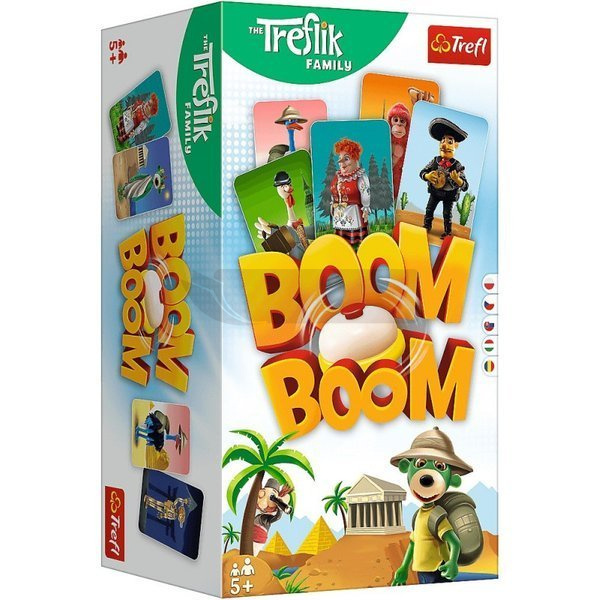W nowej odsłonie gry Boom Boom gracze starają się zebrać identyczne karty z ulubionymi bohaterami z serialu Rodzina Treflików. Wszyscy gracze w tym samym czasie wymieniają karty z ręki z kartami znajdującymi się na planszy. Po zebraniu zestawu 4 takich samych kart gracz uderza w dzwonek, sygnalizując innym wykonanie zadania. Gracze mogą polować na karty przeciwników kto okaże się najszybszy? Gracz, który jako pierwszy zbierze odpowiednie stosy takich samych kart, zostaje zwycięzcą!