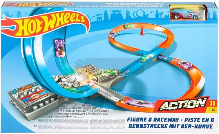 Przygotuj się na wyjątkowe wrażenia z jazdy na wspaniałym torze wyścigowym ósemka. Niech rozpocznie się wyścig! Zestaw zapewni dużo frajdy oraz niesamowitych emocji. Tor z napędem ósemka z zmienia zwykłą zabawę we wspaniałą przygodę, zachęcając dzieci do zabawy! Dzięki trzem różnym konfiguracjom toru można ścigać się autkami po różnych trasach. Bramka napędzająca powoduje, że możesz wskoczyć na wyższy bieg i przekonać się jak szybko samochodzik Hot Wheels pokona ten niezwykły tor. Dzieci mogą jednocześnie ścigać się wieloma samochodami. Im więcej aut, tym lepsza zabawa i spektakularne kraksy na trasie. Zestaw można przebudować, niech frajda trwa jak najdłużej! W zestawie znajduje się jeden samochodzik Hot Wheels w skali 1:64.