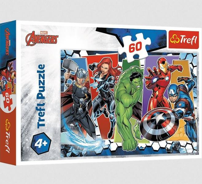 Niezwyciężeni Avengersi to puzzle składające się z 60 elementów, zaprojektowane z myślą o wszystkich fanach i fankach uniwersum Marvela. Po ułożeniu układanki powstanie obrazek o wymiarach 330x220mm.