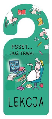 Dwustronna zawieszka na klamkę wykonana z grubego kartonu, zapakowana w woreczek foliowy.